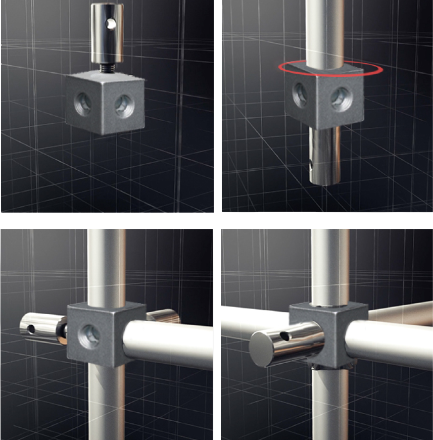 A estrutura permite infinitas soluções de montagem com um encaixe